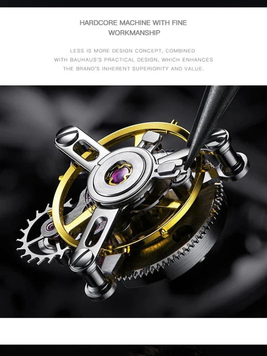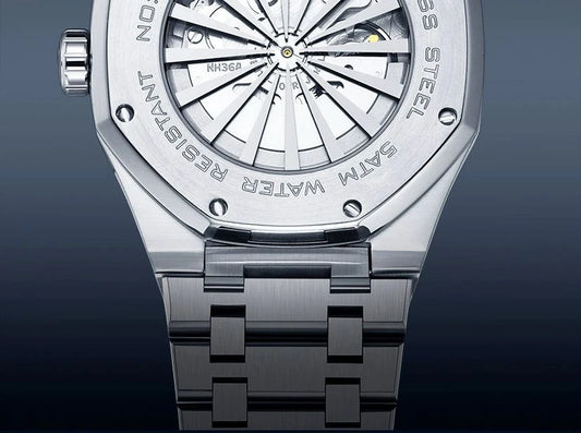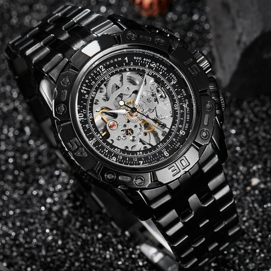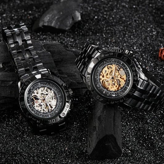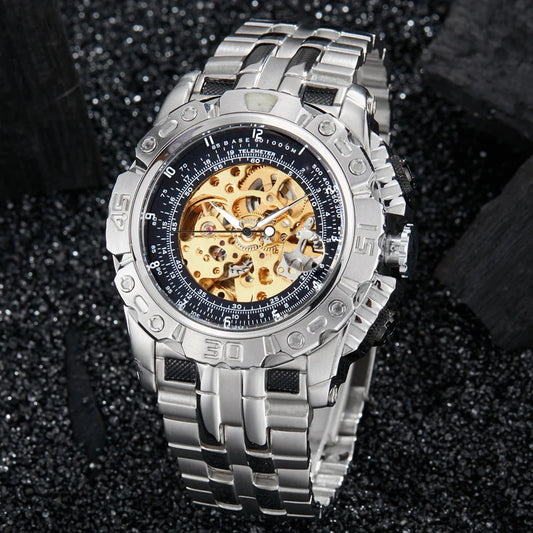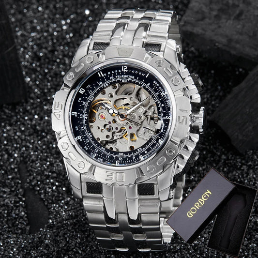 Luxury Silver Gold Automatic Mechanical Watch For Men Full Steel Skeleton Wristwatch Clock Over-sized Big Dial Relogio Masculino