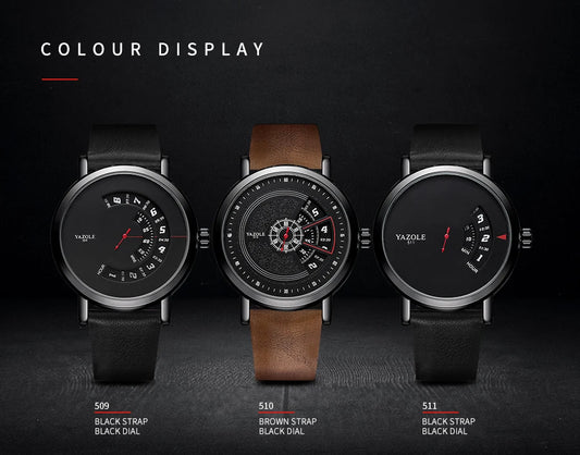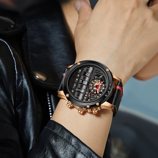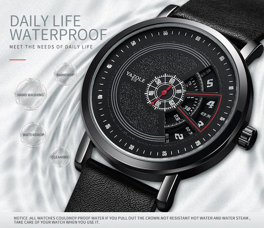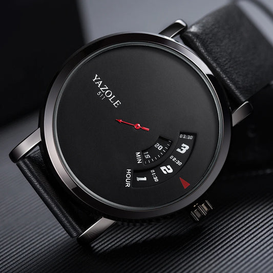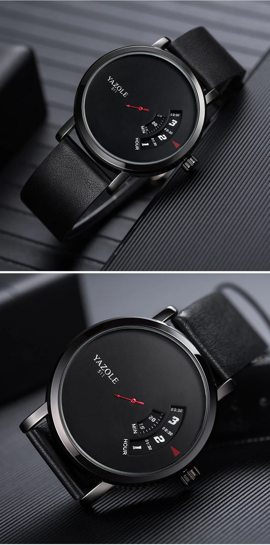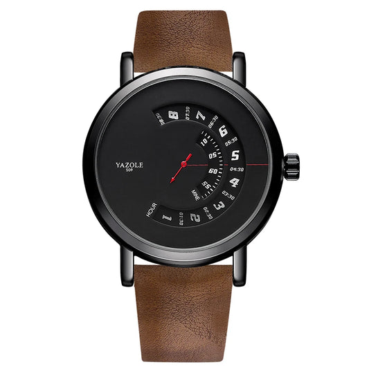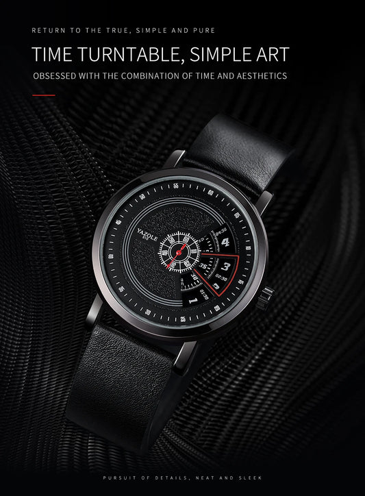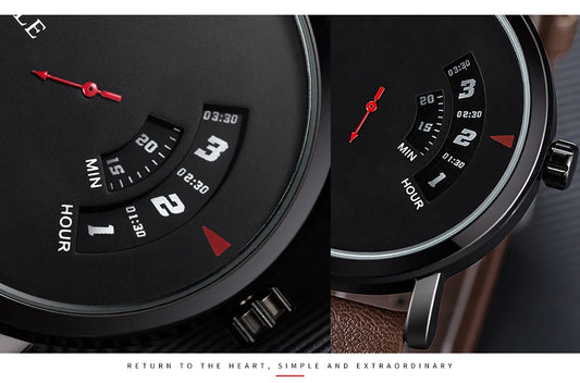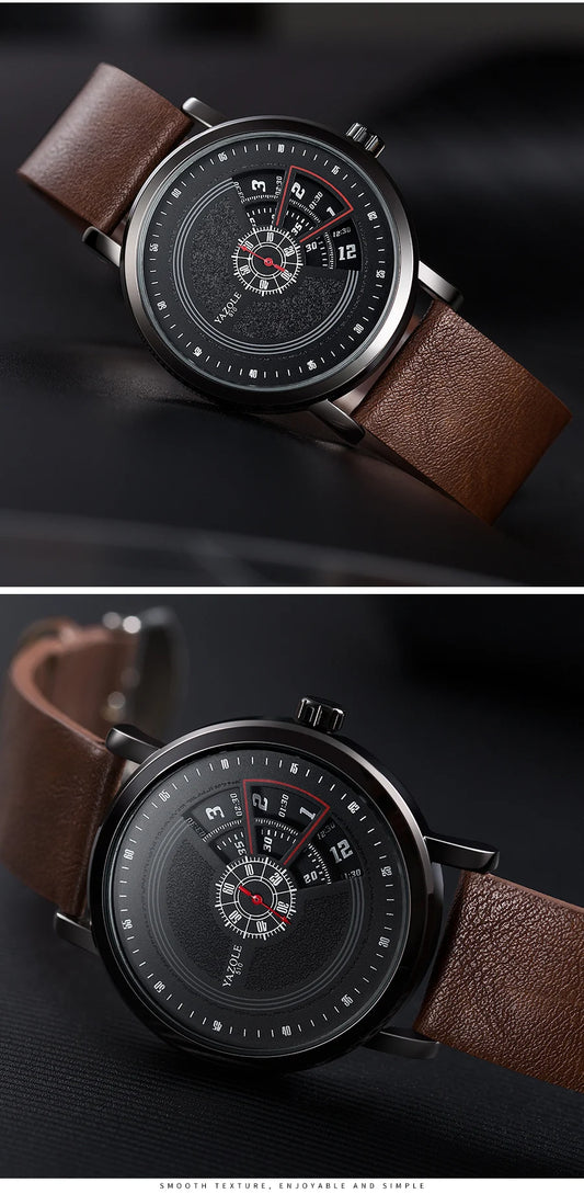 Luxury Electronic Quartz Watch For Men Business Watches Male Creative Men WristWatch Unique Rotate Date Leather Strap Watches