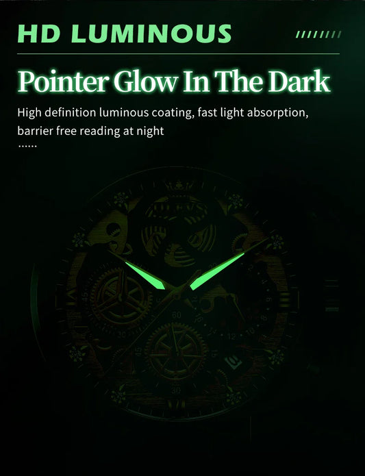 OLEVS 9947 Men's Watches Top Brand Luxury Original Waterproof Quartz Watch for Man Skeleton Style 24 Hour Day Night Wristwatch