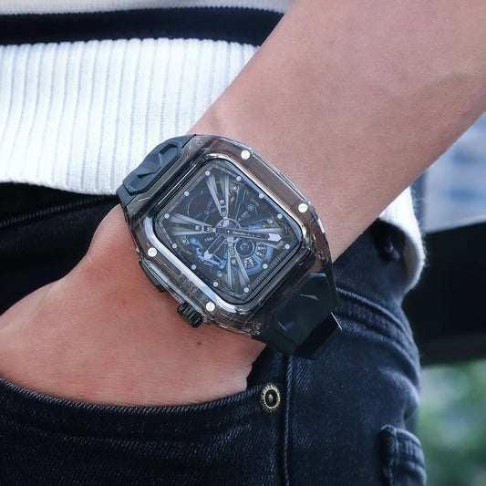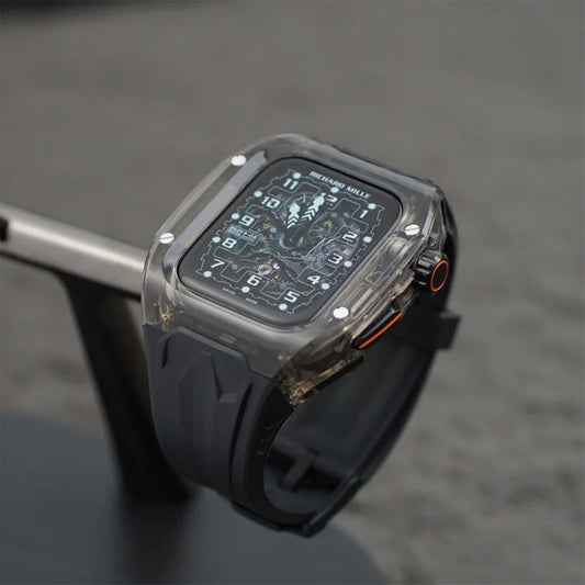 RICHARD Mile Watchband for iWatch Series 10/Ultra2, 46mm 49mm 45mm 44mm 42mm, Crystal Case + Silicone Strap for Series 9/8/7/SE2