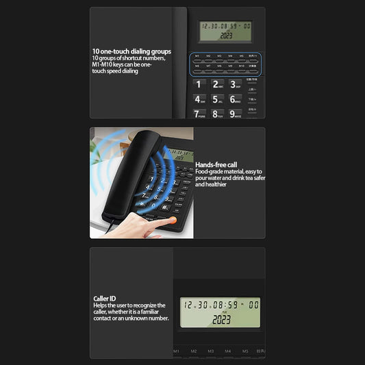 Desk Corded Telephone With Display For Home/Hotel/Office Support Music On Hold Landline Phone Corded B