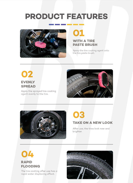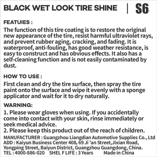 Black Wet Look Tire Shine Dressing -Automotive Clear Coat Tire Dressing Spray for Glossy Wet Tire Look,Vinyl & Plastic,Oil-Based