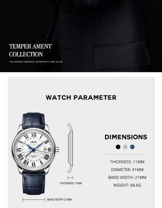 Switzerland IW GMT Watches Automatic SEIKO NH34 Movement Mechanical Watch for Men Sapphire Calendar Waterproof Reloj Hombre 2023