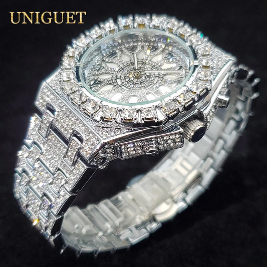 Luxury Watch For Men Full Iced Diamond Quartz Watches For Man Bright Zircon Hip Hop Hand Clock Luminous Waterproof reloj hombre