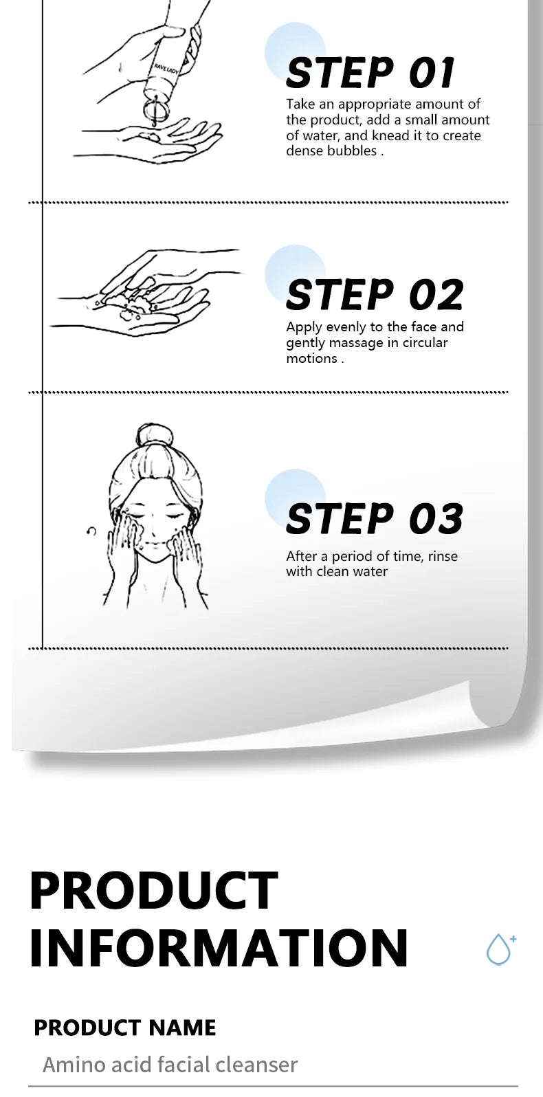 Rave Lady Low PH Amino Acid Facial Cleanser Foam Hydrating Deep Remove Cleaning Moisturizing Skin Gentle Exfoliator Face Wash Both Men And Women Skin Care