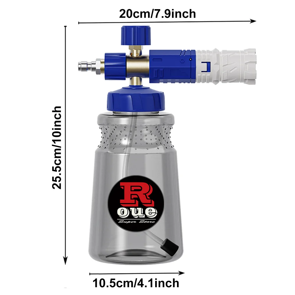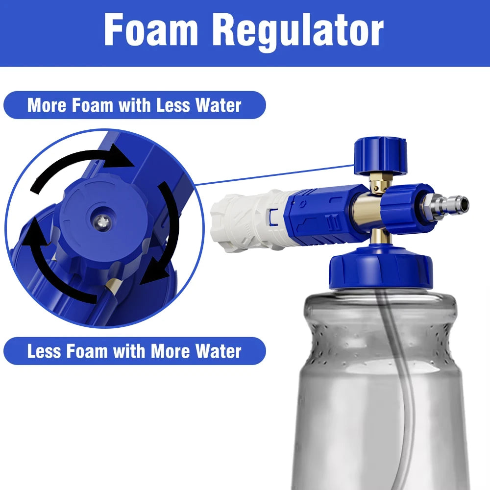 Powerful Foam Cannon, sprays soap foam up to 6m/ 20ft; Upgraded large and evenly wired stainless-steel strainer for more dense and thick foam.