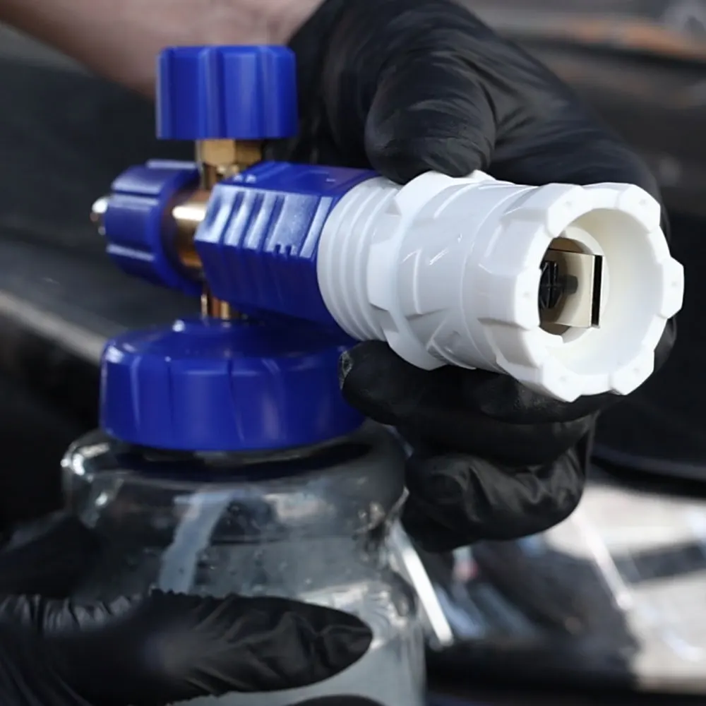 1. Assembling the Adapter with sealing tape to Snow Foam Lance, then connect it to the Pressure Washer Gun or Extension Lance.